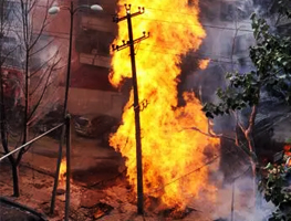 石家庄一处燃气泄露引发大火 火苗超7层楼