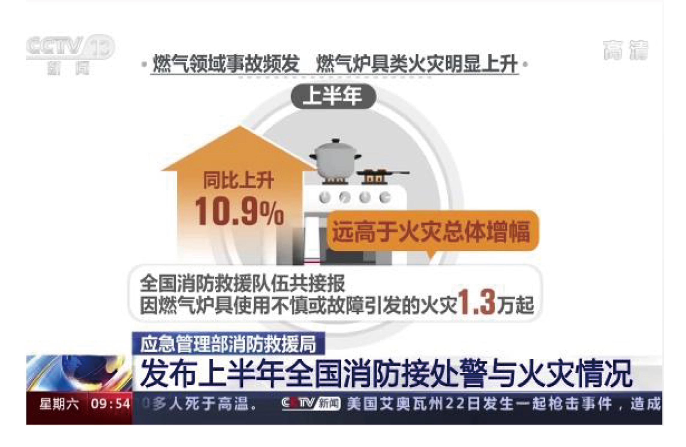 上半年,全国消防救援队伍共接报因燃气炉具使用不慎