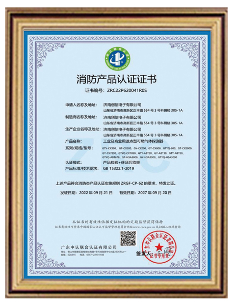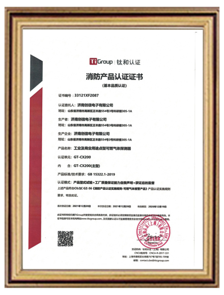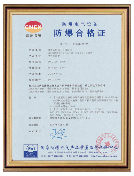 济南创信电子有限公司位于泉城济南高新技术产业开发区,公司多年来致力于气体报警器、云服务系统、仪器仪表的研发升级,是一家集生产、研发、销售、售后服务为一体的综合性公司。公司产品取得了国家质量监督部门颁发的计量器具型式批准证书、国家防爆证书、ISO9001:2015质量管理体系认证证书、ISO14001:2015环境管理体系认证、OHSAS180001:2007职业健康安全管理体系认证。
